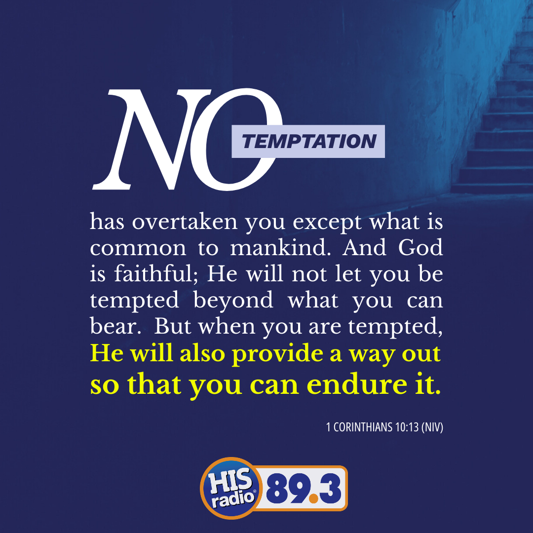 No temptation has overtaken you except what is common to mankind. And God is faithful; He will not let you be tempted beyond what you can bear. But when you are tempted, He will also provide a way out so that you can endure it.